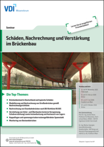Nähere Informationen zum Thema „Spannungsrisskorrosion“ und zu weiteren Fragestellungen im Zusammenhang mit dem Erhalt und der Verstärkung unserer Brücken werden auch in der VDI-Fortbildungsveranstaltung „Schäden, Nachrechnung und Verstärkung im Brückenbau“ thematisiert, die u.a. durch unser Büro und unsere Erfahrungen mitgestaltet wird.